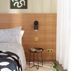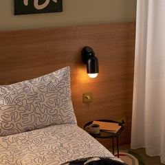 A downward-facing wall sconce on an adjustable axis, JENSEN is ideal for creating an atmospheric mood in bedrooms and hallways.