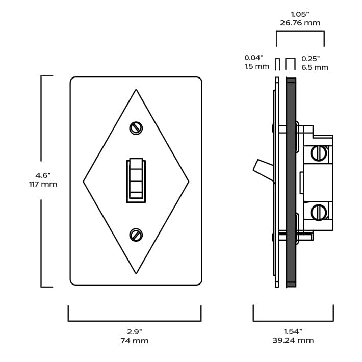 Plank Hardware JASPER 1G Diamond Toggle Switch - Brass / Unlacquered Brass